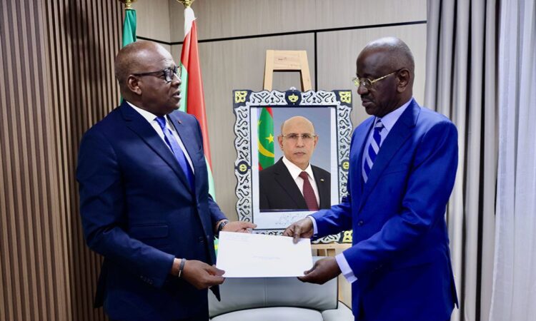 تسلم وزير الشؤون الخارجية والتعاون الإفريقي والموريتانيين في الخارج، محمد سالم ولد مرزوك، نسخة من أوراق اعتماد سفير كوت ديفوار بنواكشوط، توري سيكو.