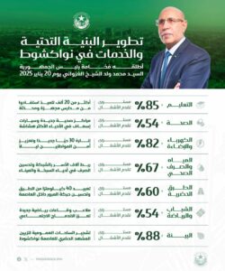 فخامة رئيس الجمهورية، السيد محمد ولد الشيخ الغزواني، أطلق يوم 20 يناير 2025 برنامج تطوير البنية التحتية والخدمات في نواكشوط، … معطيات و أرقام.