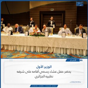 حضر معالي الوزير الأول، السيد المختار ولد اجاي، مساء اليوم الاثنين بالعاصمة الجزائر، حفل عشاء رسمي أقامه على شرفه معالي الوزير الأول الجزائري السيد سيفي غريب.